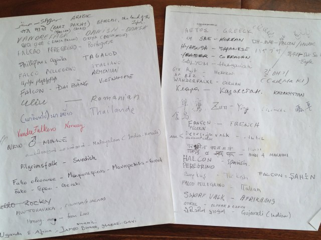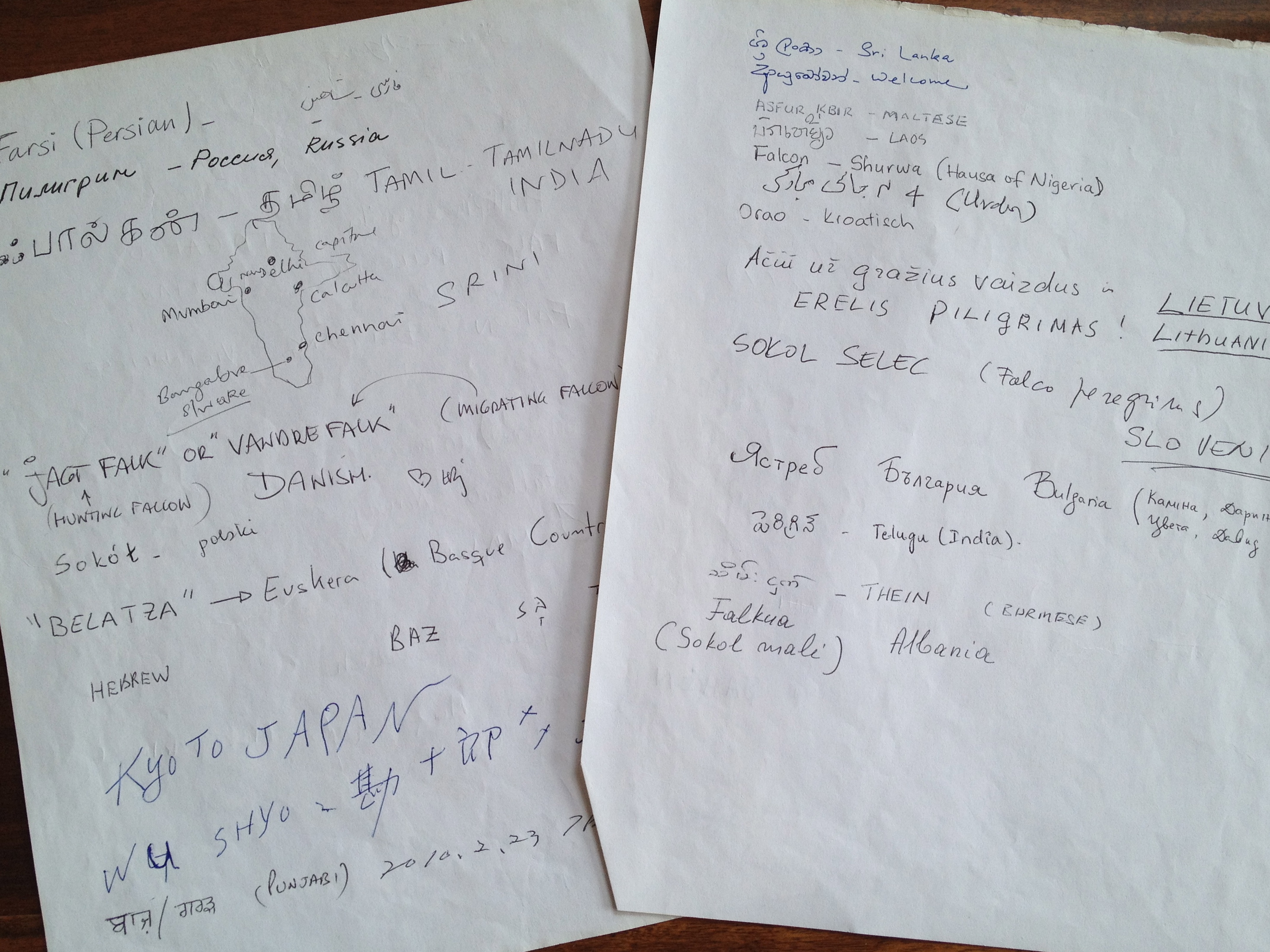 While speaking with visitors, local and from around the world, he has collected names for these falcons in about 70 languages.